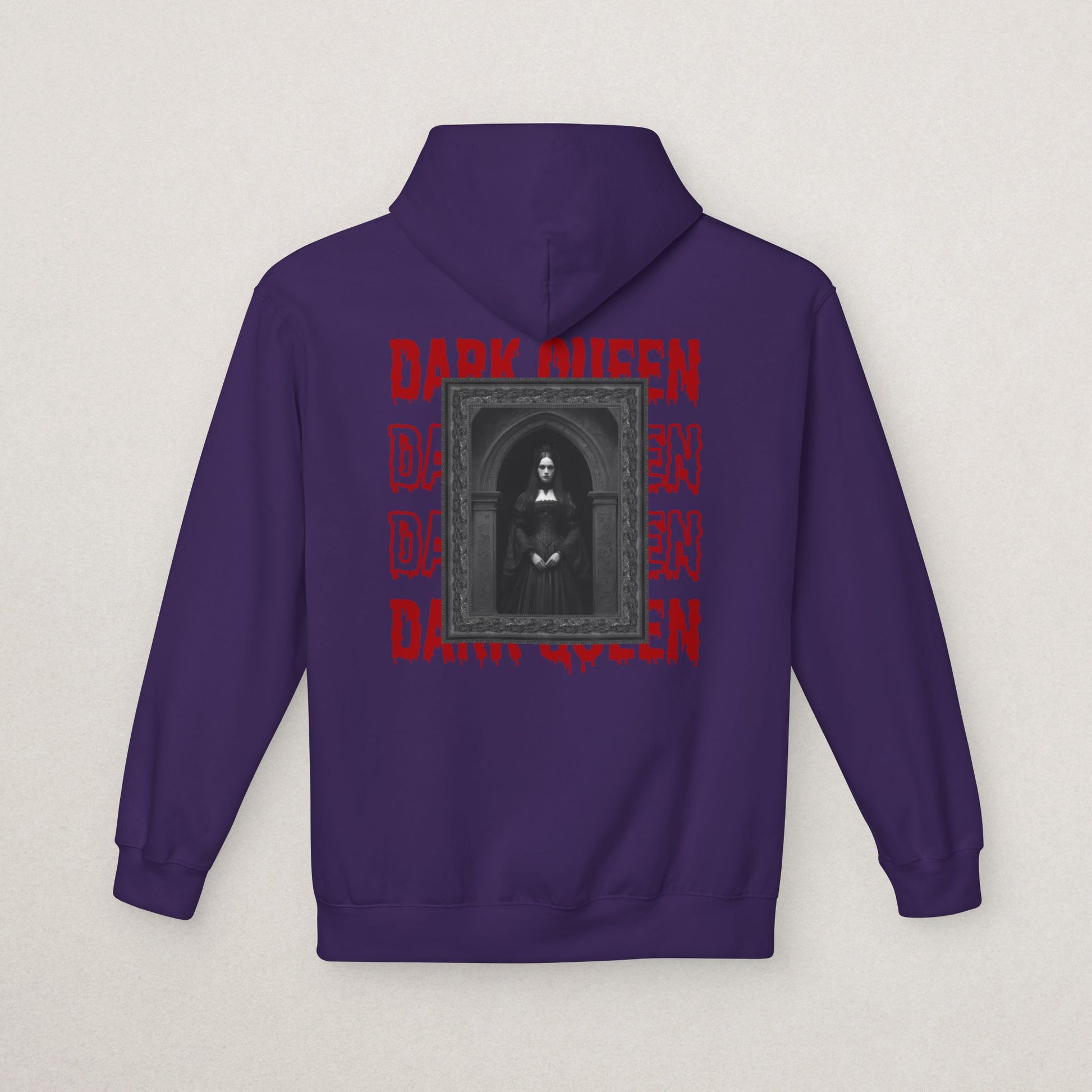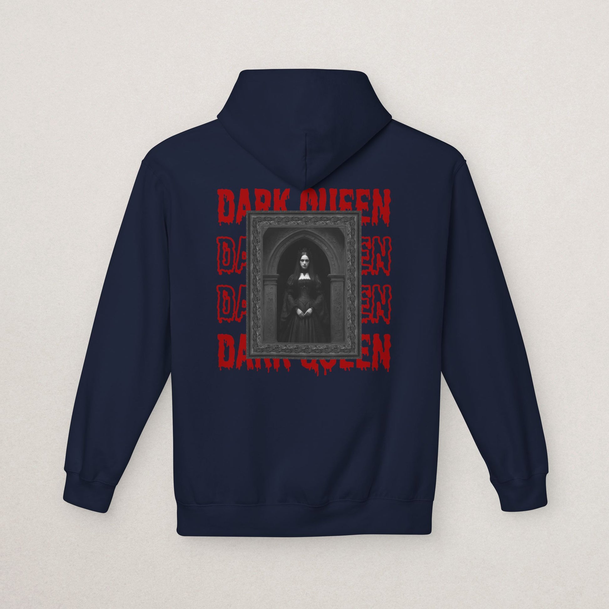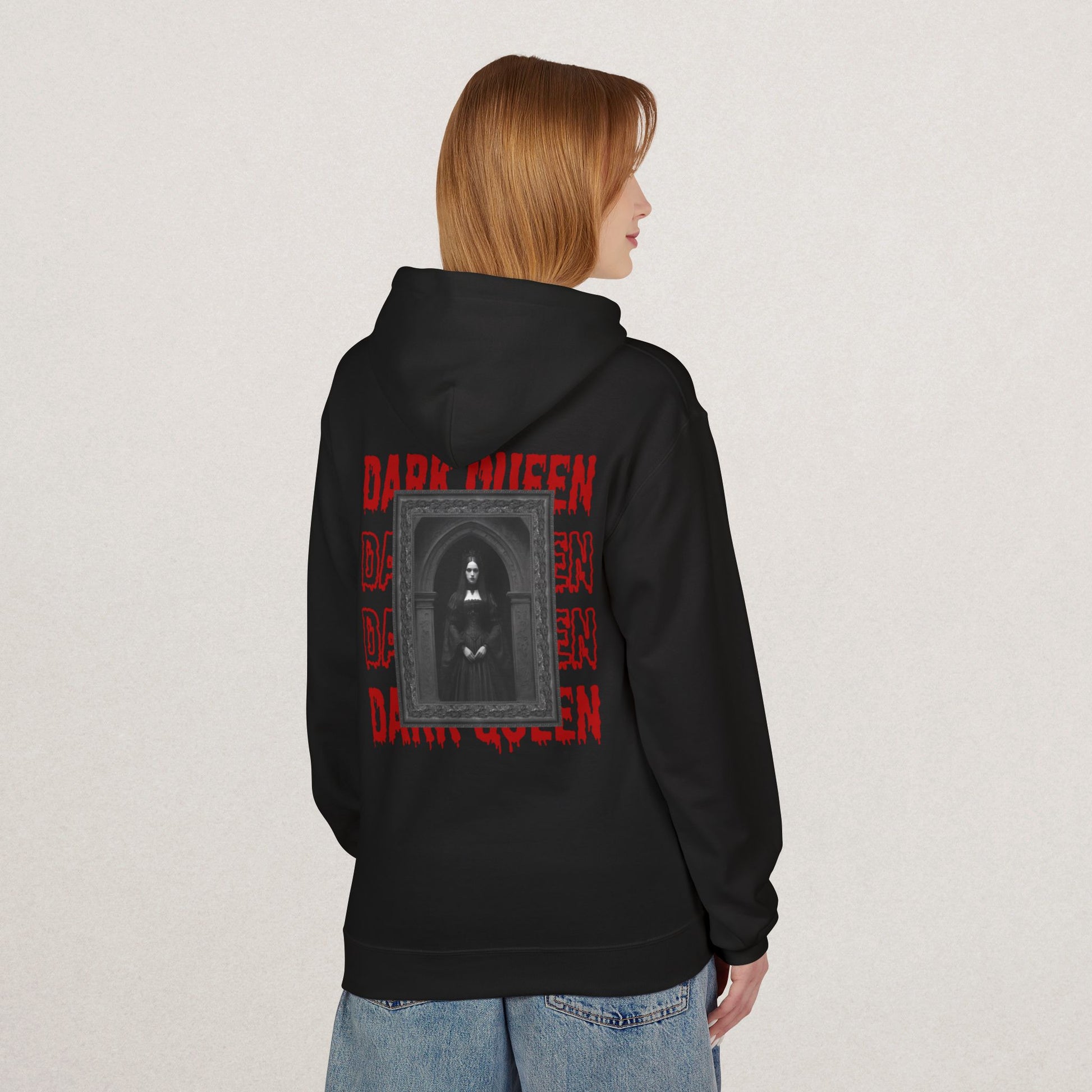 Rule your style with the Dark Queen Hoodie – a bold gothic-inspired design featuring a black-and-white royal queen framed in dramatic contrast, with striking red lettering at the bottom. Perfect for those who embrace dark aesthetics, alternative fashion, and unique statement pieces.